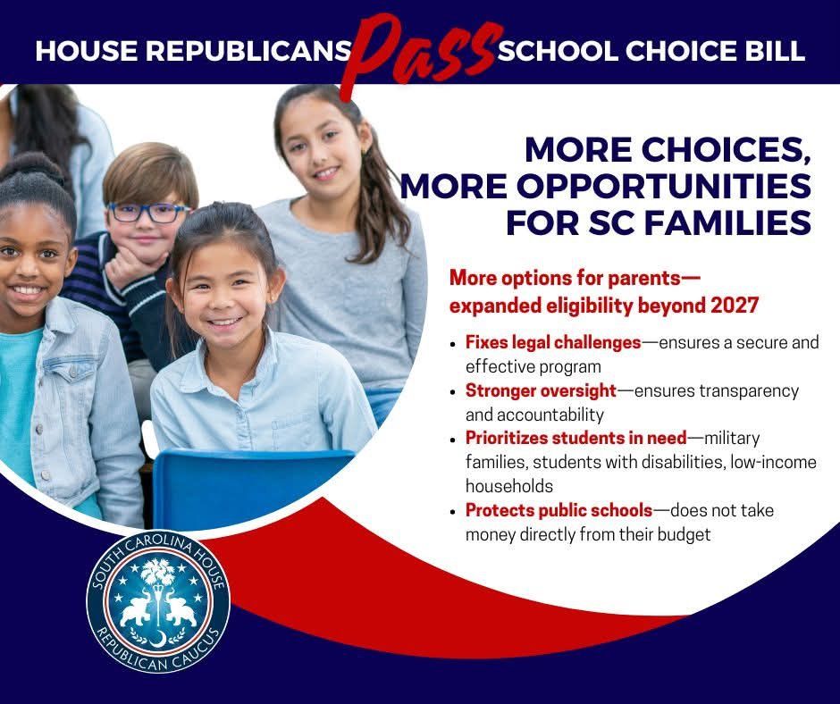 I have always believed that education is not one-size-fits-all. While Joe and I and our children all attended public schools for K-12, we know that this does not work perfectly for everyone. Many of our schools are overcrowded, have big classroom sizes, and in some cases are just huge (such as our two high schools in Mount Pleasant). This works fine for some children, but not for others. Parents—not bureaucrats—should decide what’s best for their children. This bill delivers on that promise, expanding educational opportunity while ensuring strong oversight, financial accountability, and a program that will stand the test of time.